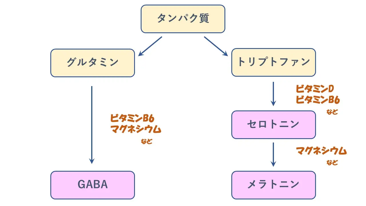 ※タンパク質からGABA、メラトニン生成のイメージ略図