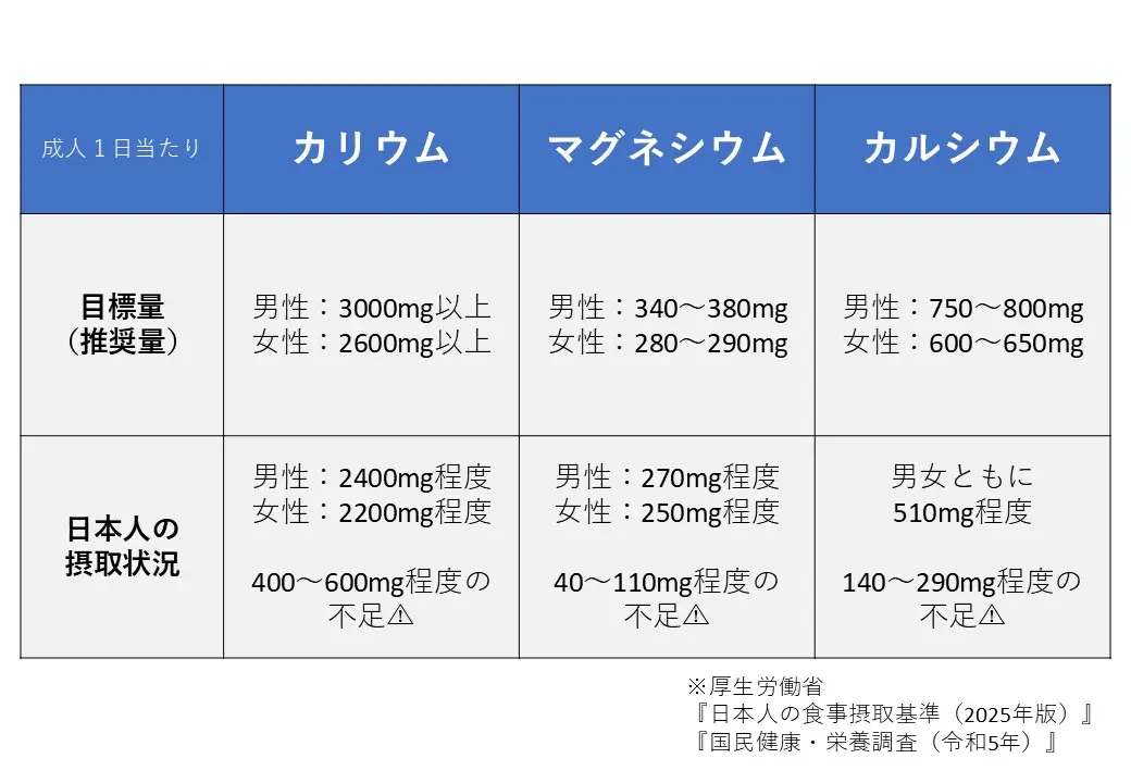 これら3つのミネラルはいずれも、摂取目標に対し、平均して不足が指摘されてします。