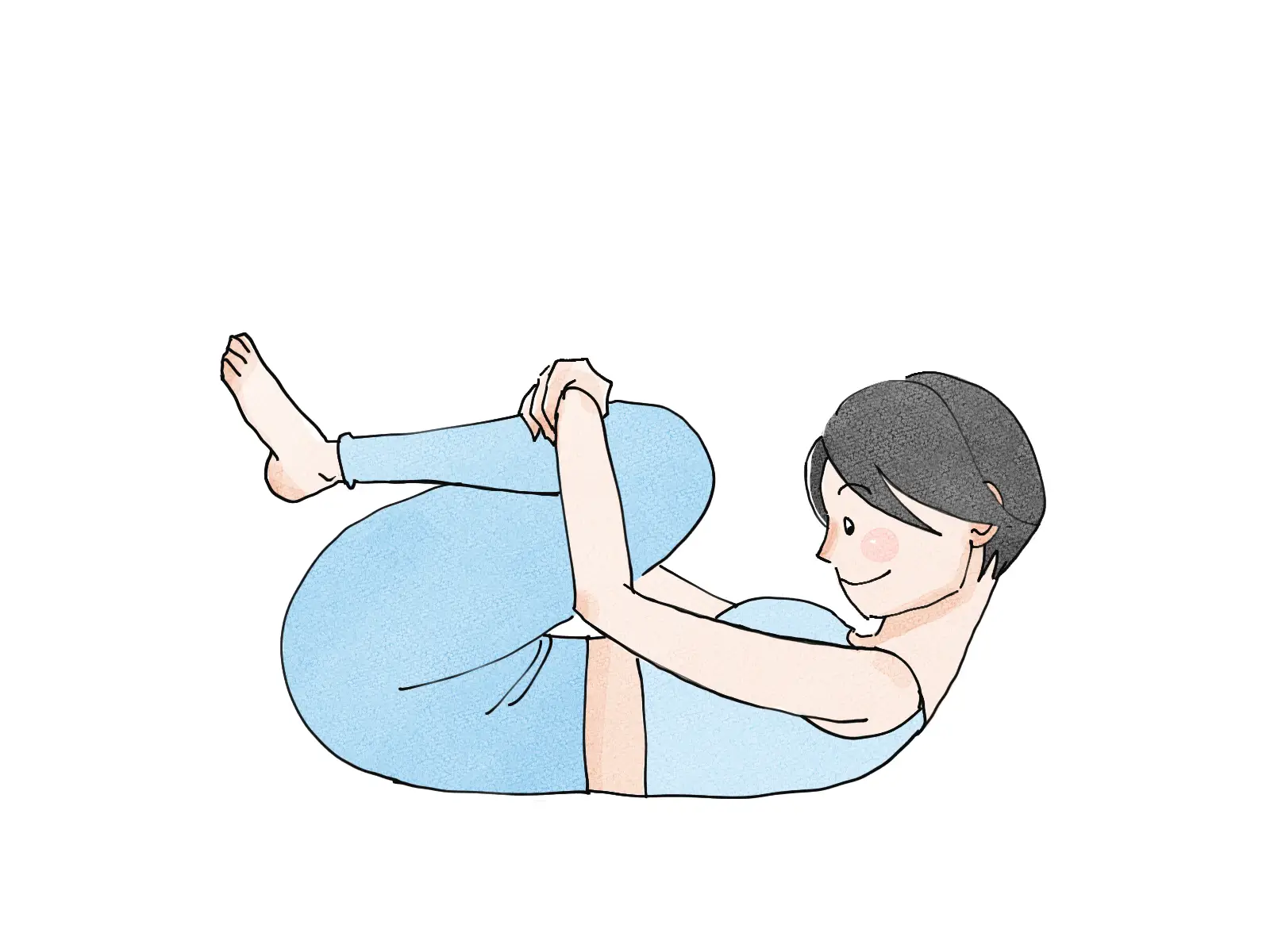 1.仰向けになり脚を抱えて腰を丸める。