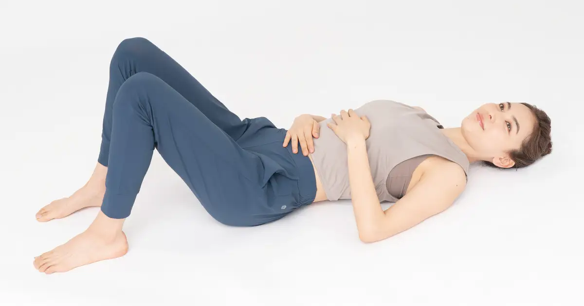 1.仰向けになり、両手で肋骨を軽くつかむ。