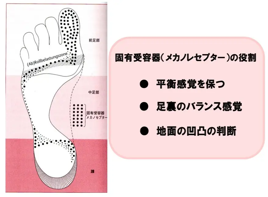 足底固有受容器(メカノレセプター)は、地面との接触を通じて