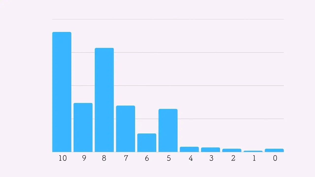 0~10までの11段階で皆さまに評価をしていただきましたが、ある公式に基づき計算を行うと
