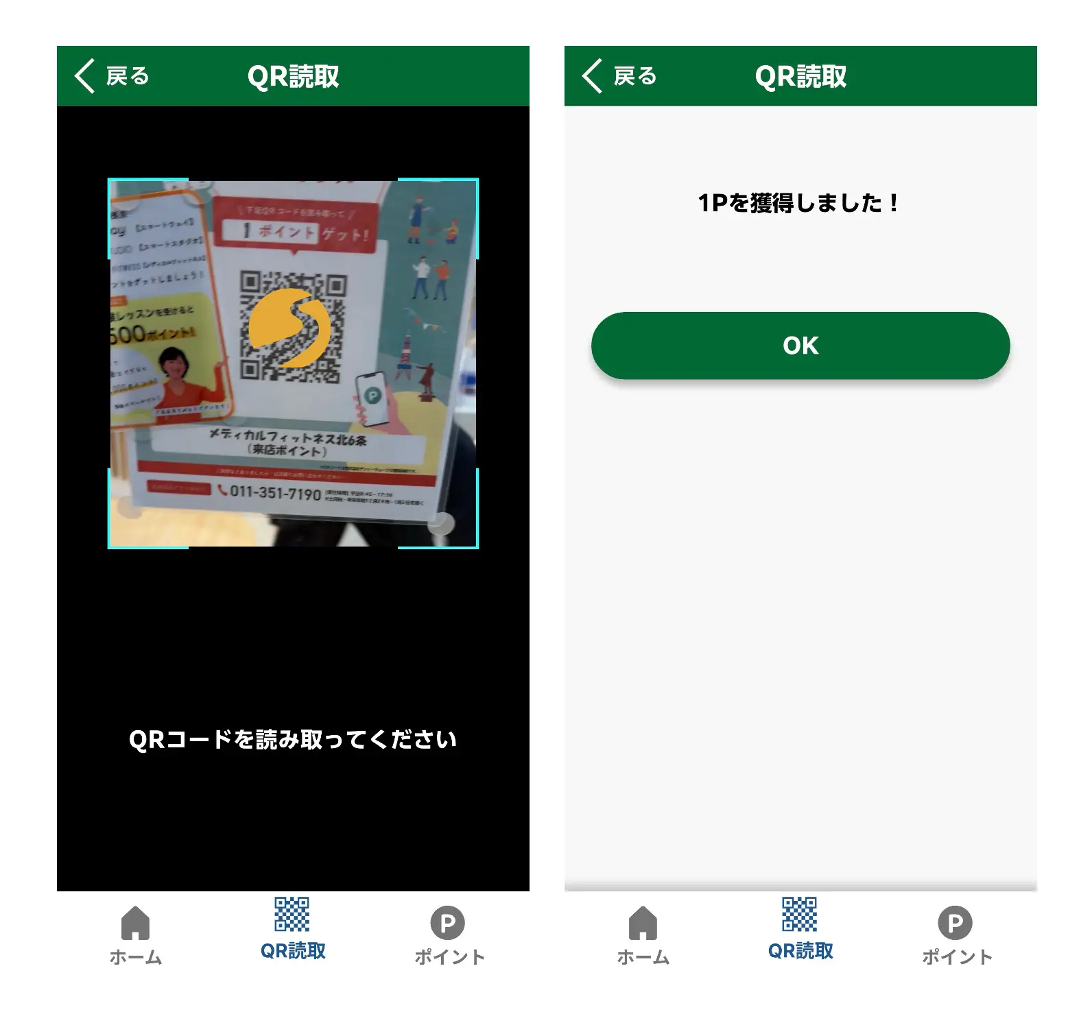 - QR コードを読み取り完了で1ポイント